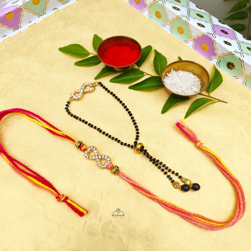Set of 2 Rakhis: Thread Rakhi for Bhai & Mangalsutra Bracelet Rakhi for Bhabhi