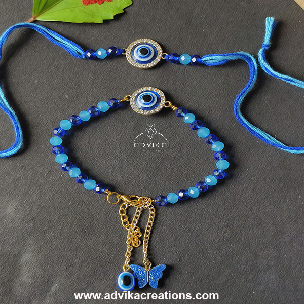 Bhaiya-Bhabhi Rakhi Combo: Includes 1 thread rakhi for Bhai and 1 bracelet rakhi for Bhabhi