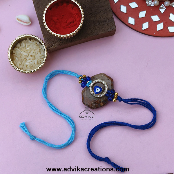 Premium Design: Features evil eye charm, blue crystal bead, and golden bead