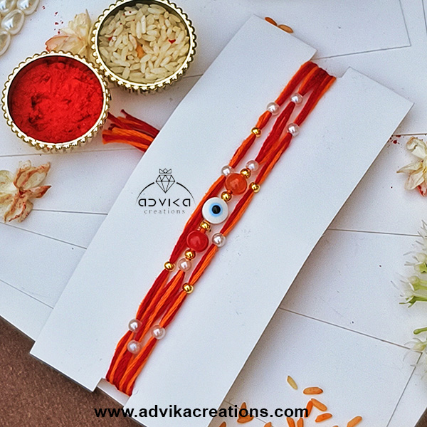 Elegant Bead Work: Decorated with red, golden, and pearl beads for a festive and graceful look.