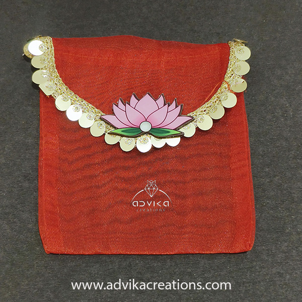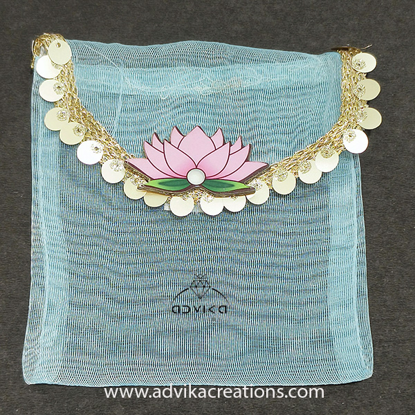 This elegant net fabric pouch is intricately crafted with golden lace and features a beautiful lotus charm, making it an ideal gift for any occasion. The delicate lace adds a touch of sophistication, while the lotus symbolizes purity and beauty. Perfect for gifting, storing coins, small trinkets, or jewelry, this versatile pouch can also be used as a decorative item or a keepsake for special moments.