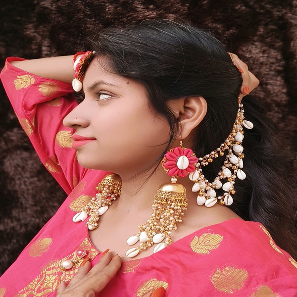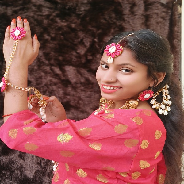1 pair hathphool, 1 pair earring, 1 mangtika