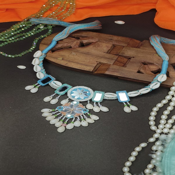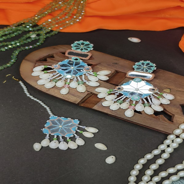 Stunning handmade Mirror Jewelry Set with kaleera Bangles set (Sky blue)