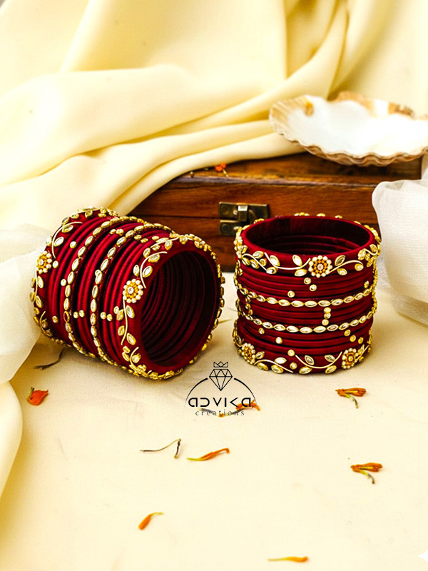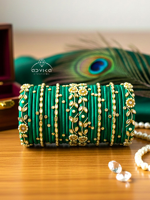 Each bangle is wrapped in premium silk thread, giving it a smooth, luxurious texture and a vibrant shine.