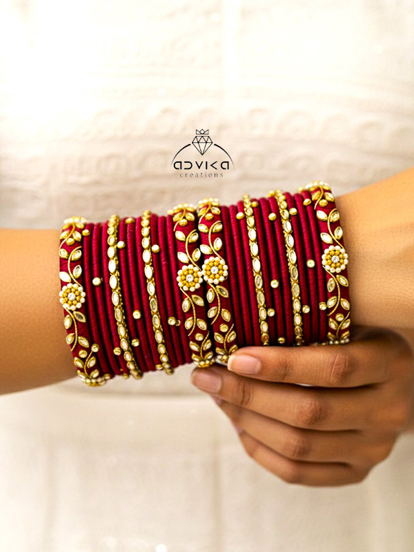 Add a royal touch to your festive and wedding look with this handcrafted Silk Thread Bangle Set, beautifully designed to reflect traditional charm with a modern finish.