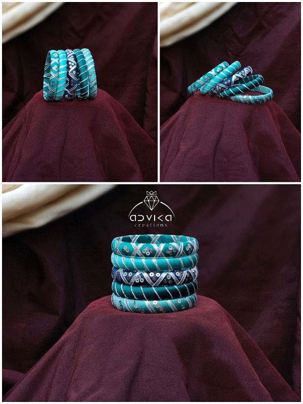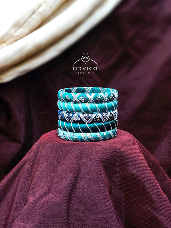 Adorn your festive and wedding look with this elegant Shades of Blue Silk Thread Bangle Set, beautifully handcrafted to add charm and sophistication to your ensemble. The bangles are wrapped in premium silk thread in multiple blue tones—royal blue, sky blue, and navy—creating a rich gradient effect that complements every outfit.