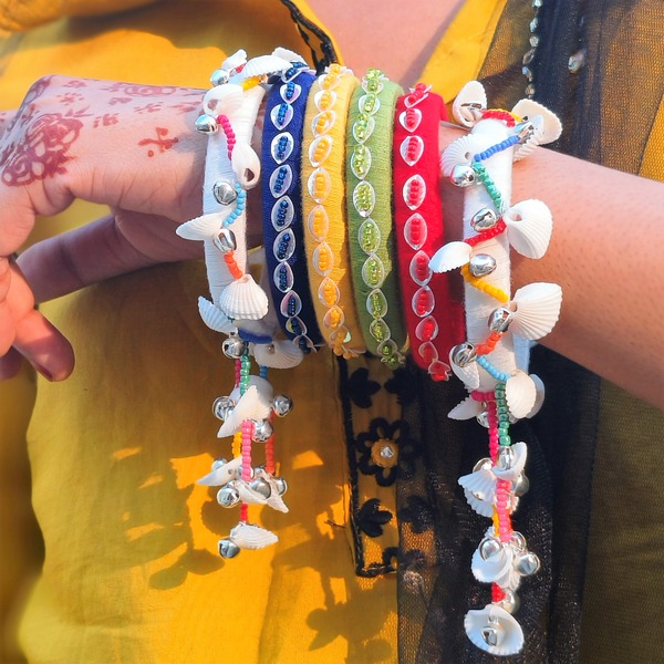 Exquisite handmade Festive bangles blending tradition and style. white color latkan and intricate patterns make them a stunning accessory for festive celebrations. Lightweight, comfortable, and versatile - perfect for casual or formal occasions.
