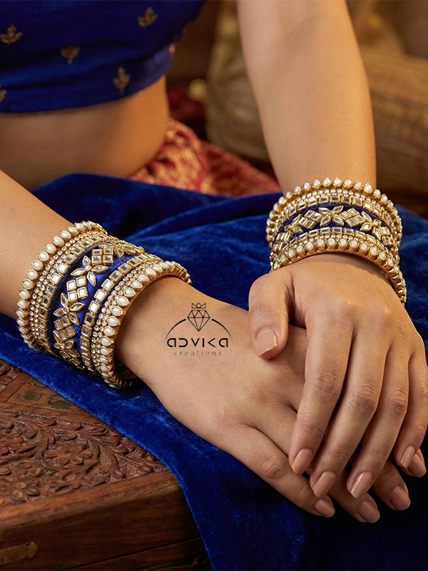 The deep navy blue shade gives a sophisticated and timeless appeal, making these bangles perfect for weddings, festive celebrations, and traditional functions. Lightweight yet eye-catching, they pair effortlessly with sarees, lehengas, and ethnic suits.