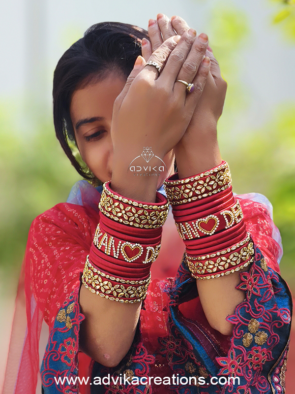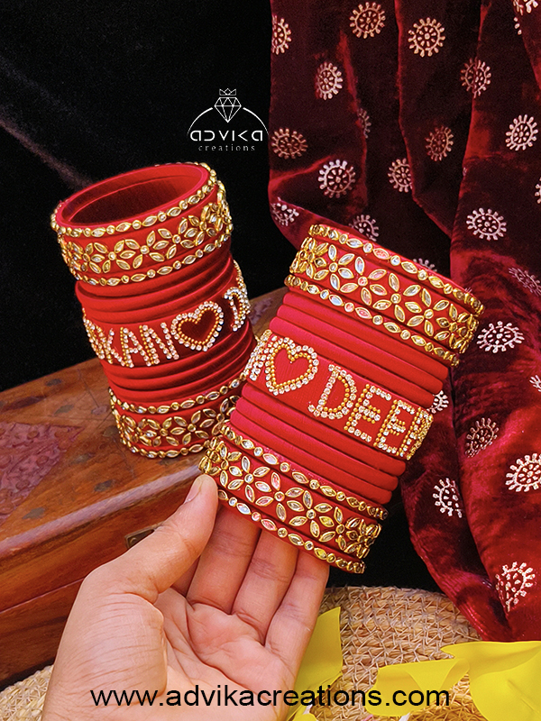 Celebrate your special moments with our Customised Name Silk Thread Bangle Set, thoughtfully handcrafted to make your festivities even more memorable. Designed with premium-quality silk thread, each bangle is beautifully wrapped, giving it a smooth, luxurious finish that is both lightweight and comfortable for long wear.