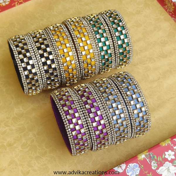 Add a touch of elegance and tradition to your look with our Silk Thread Kada Bangle Set. Crafted with precision, these kadas feature beautifully wrapped silk thread in vibrant hues, offering a stunning blend of color, texture, and artistry. The soft sheen of the silk combined with the sturdy structure of the bangles creates a perfect balance of grace and durability.