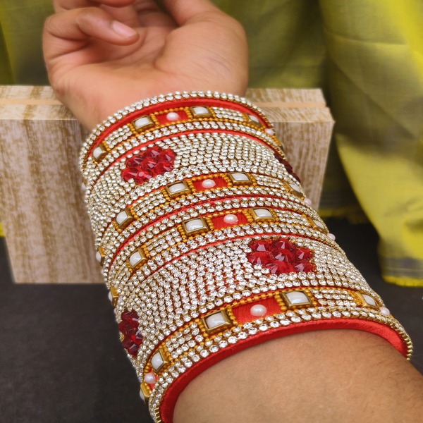 The rich red color of these bangles adds an element of festive and auspiciousness to your ensemble, making them perfect for weddings, festivals, and special occasions.