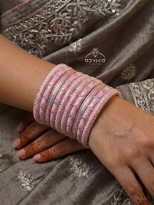 Elegant Baby Pink Silk Thread Bangles