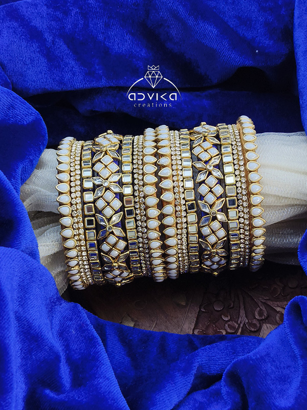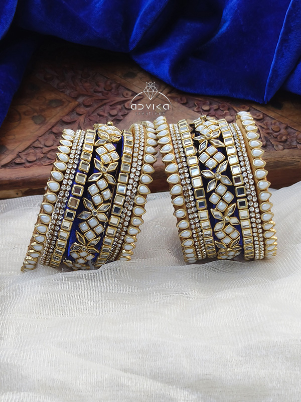 The deep navy blue shade gives a sophisticated and timeless appeal, making these bangles perfect for weddings, festive celebrations, and traditional functions. Lightweight yet eye-catching, they pair effortlessly with sarees, lehengas, and ethnic suits.