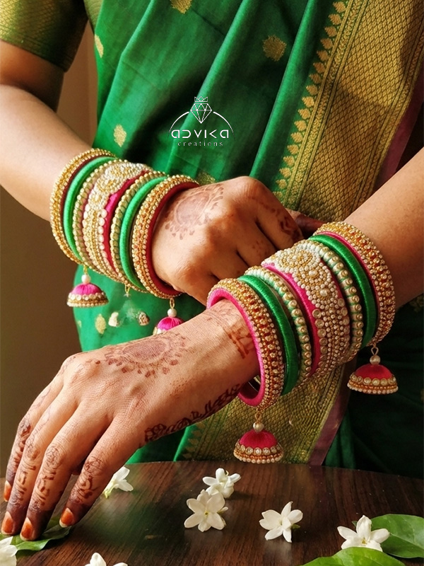 Silk Thread Jhumka Bangle Set – Pink & Green/ACI3697