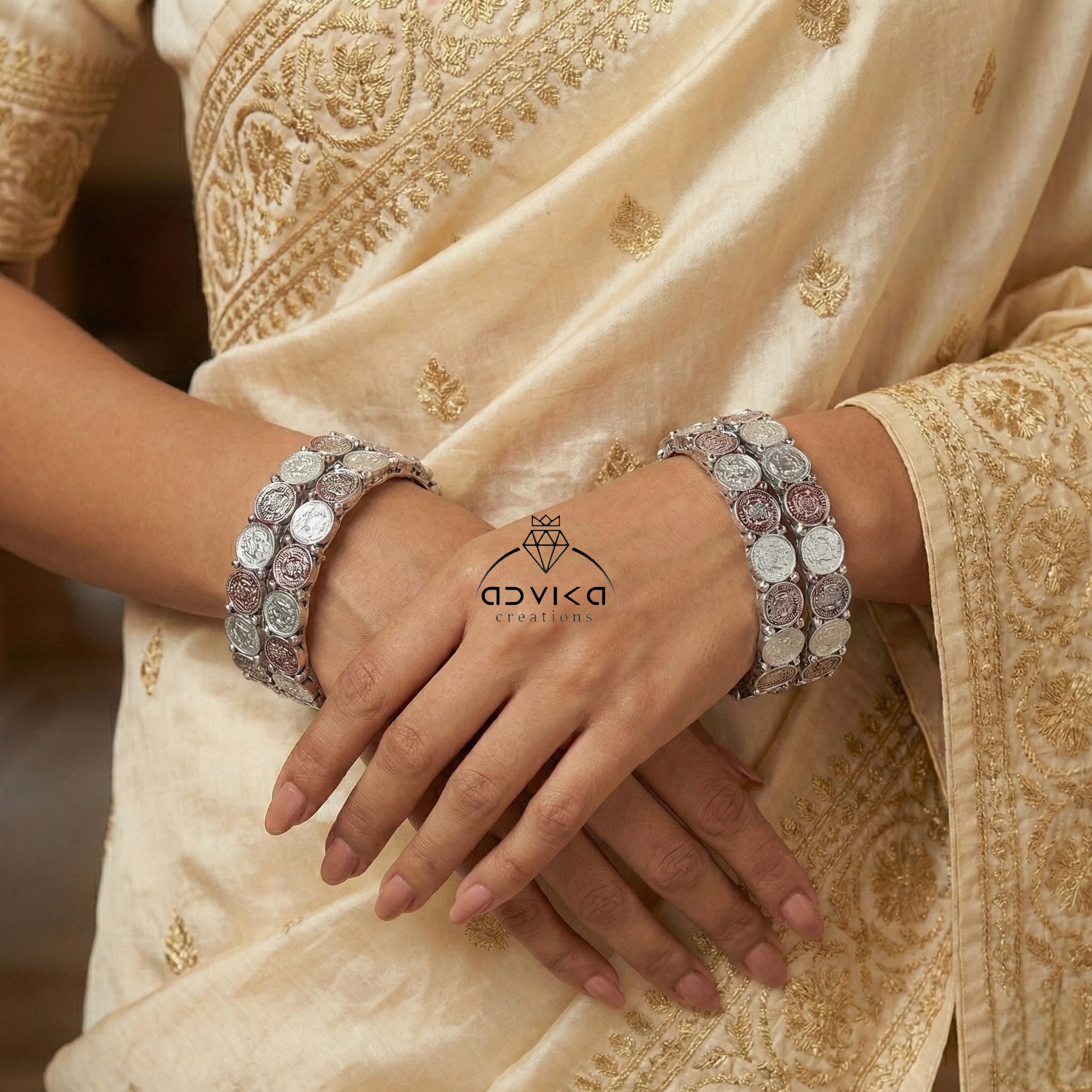 Silver coin silk thread kada bangle