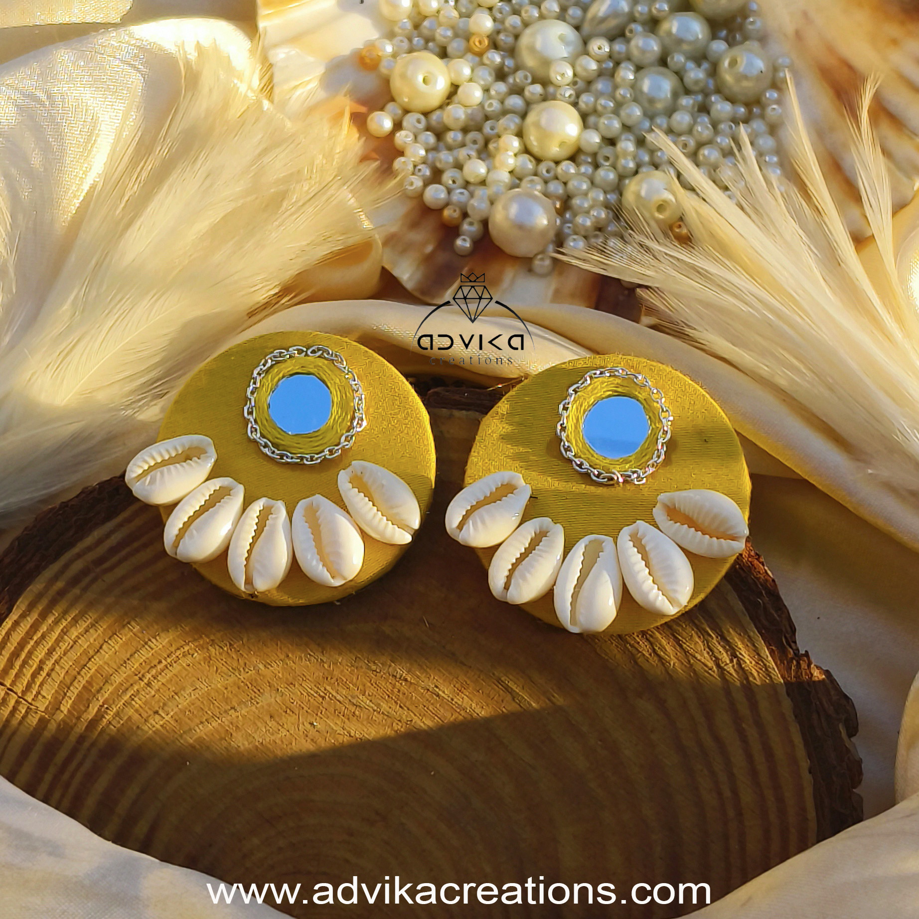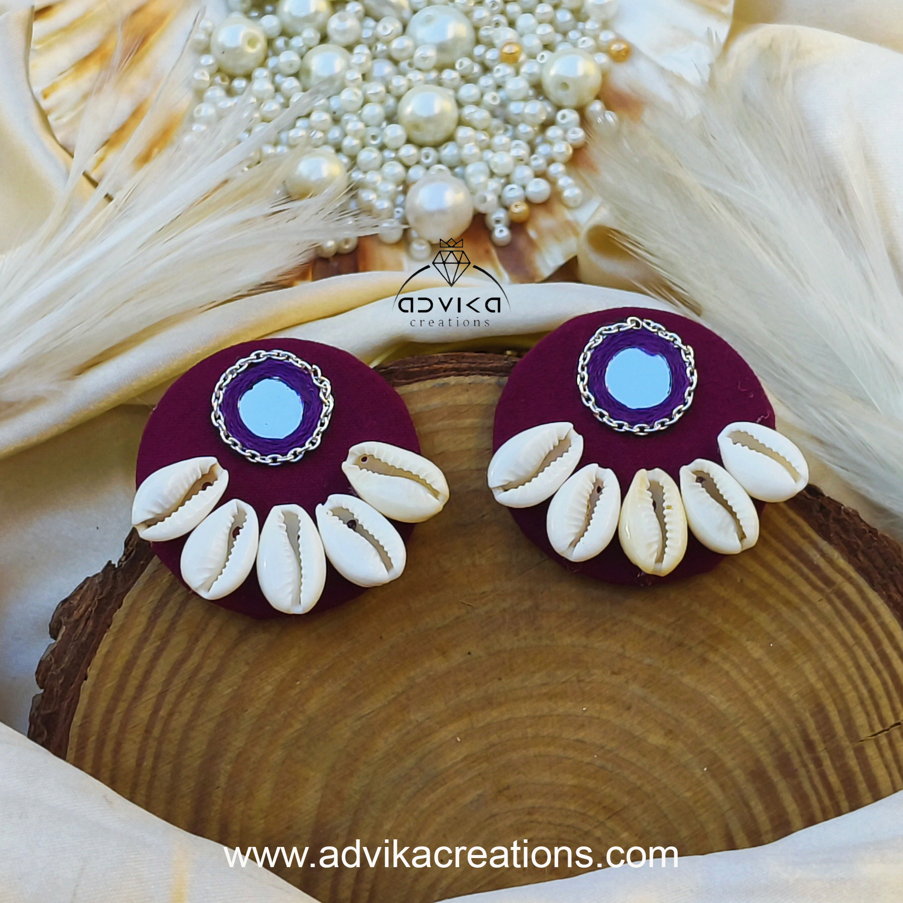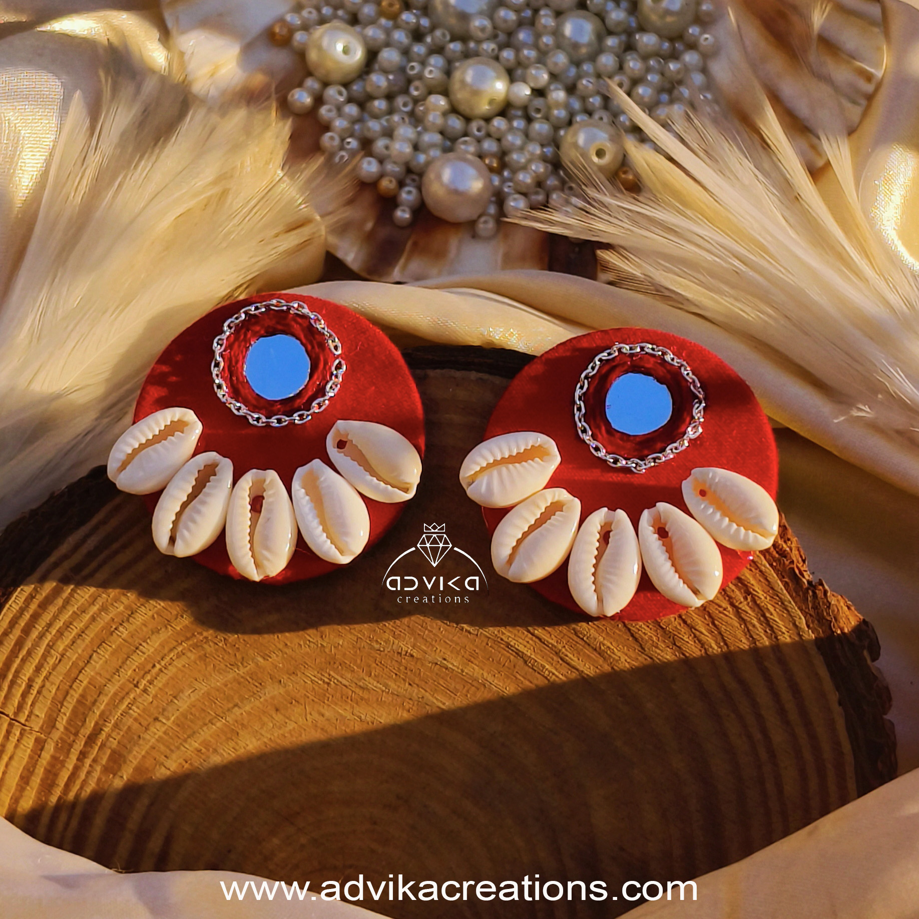 Elevate your ethnic and contemporary look with our Circle Shape Fabric Earrings, beautifully handcrafted to add a touch of elegance to any outfit. Designed with premium-quality fabric, these earrings feature a stunning combination of cowrie shells, reflective mirror work, and delicate silver chain detailing that create a perfect fusion of tradition and modern style.
