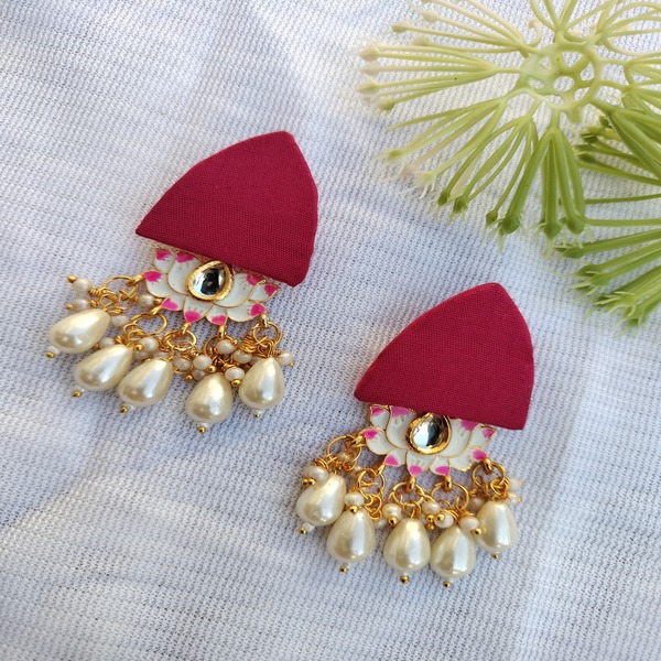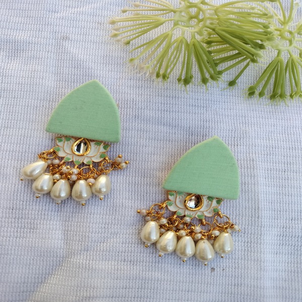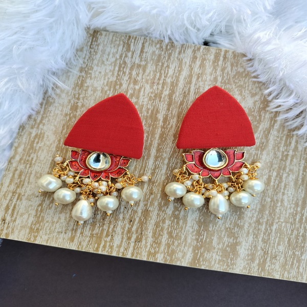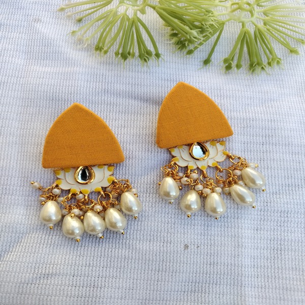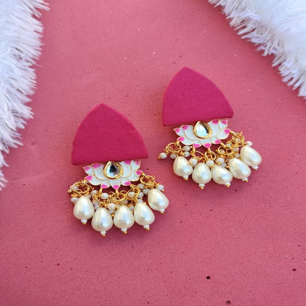 The Handmade Lotus Fabric Earrings with Pearl Hanging Work are a graceful and artistic accessory inspired by nature's beauty. Featuring a lotus motif crafted from premium fabric, these earrings radiate elegance and charm. The intricate details of the lotus design highlight the artistry and craftsmanship involved. Delicately suspended below are lustrous pearl hangings that add a soft, feminine touch and enhance the overall sophistication of the earrings.