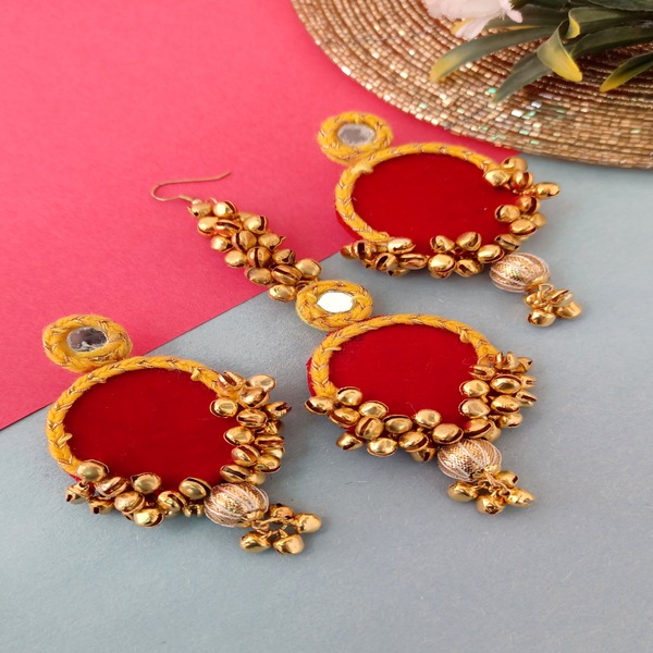 Red color Golden ghoongroo Elegant Pearl & Charm Embellished Fabric Jewelry
